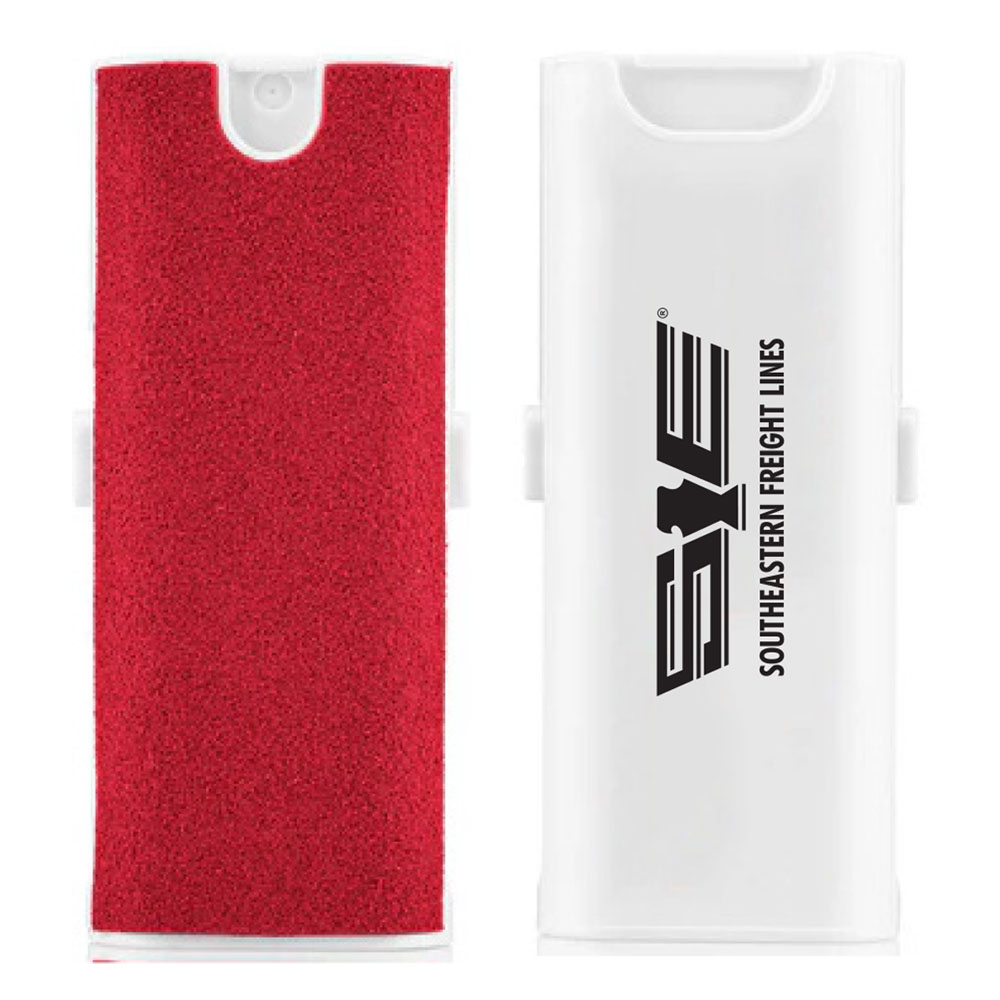 All-in-one tech cleaner features a refillable spray, red built-in microfiber cloth and smart detailing tools to reach every nook and cranny. The sponge tip is great for tight spaces and an angled silicone tip is perfect for earbuds and speaker ports. Made from recycled ABS plastic, this smart tool is designed to keep your tech spotless. Includes kraft gift box with instructions. 3.75" L x 0.75" D x 1.5" W